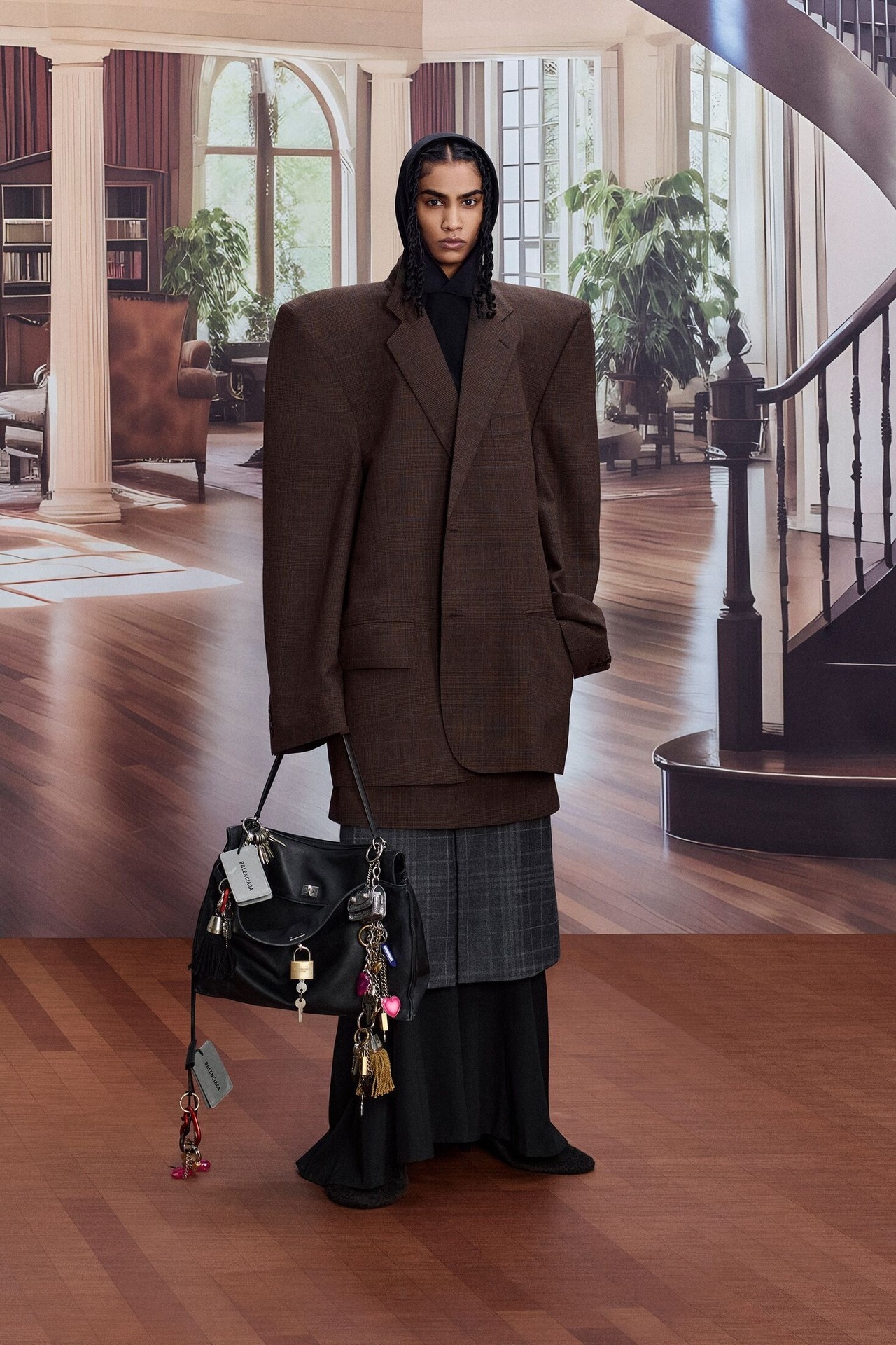 The contrast between the intricate detail of the collection and the flatness of architectural photography is key to the advertising story. The Summer 24 Collection by Balenciaga is an exquisite combination of fitting casualwear, flowing tailoring, hybrid ready-to-wear, and trompe l'oeil accessories. Every piece of clothing and accessory exudes originality and inventiveness, mirroring Demna's unmatched outlook on the direction of fashion.