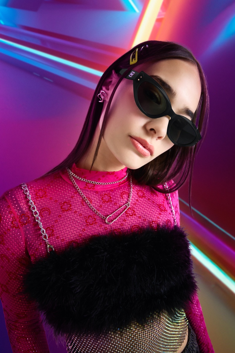 These patterns, which are evocative of early 2000s fashion, are brilliantly placed against backdrops of neon colours and futuristic lighting. With frames priced as little as $17.95, the line guarantees accessibility without sacrificing style.